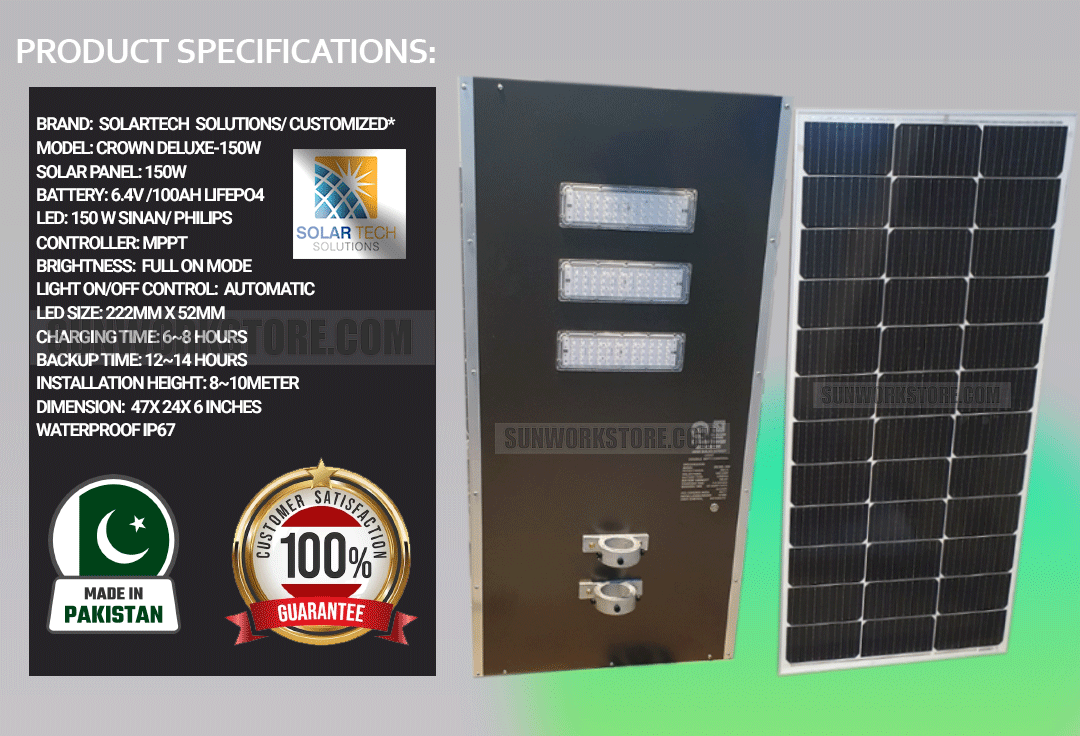 Pakistan’s 1st 150W Solar Light All-in-One Crown Deluxe Model Super Bright Light Warm White White Led Color